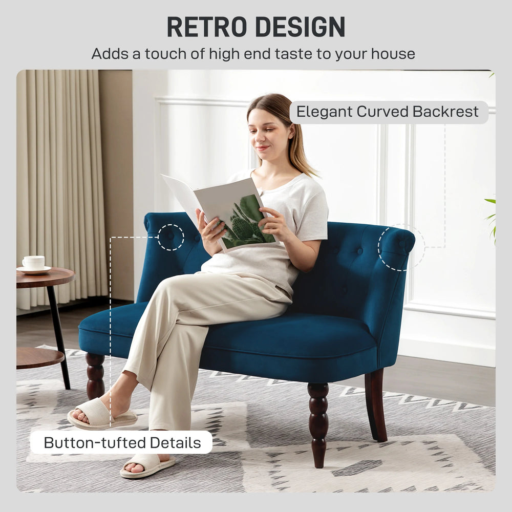 HOMCOM Velvet 2 Seater Sofa, Button Tufted Wingback Loveseat with Rubber Wood Legs for Living Room, Bedroom, Dark Blue is backordered and will ship as soon as it is back in stock.