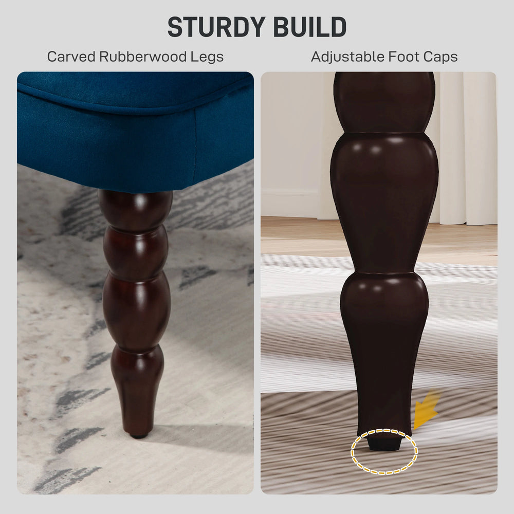 HOMCOM Velvet 2 Seater Sofa, Button Tufted Wingback Loveseat with Rubber Wood Legs for Living Room, Bedroom, Dark Blue