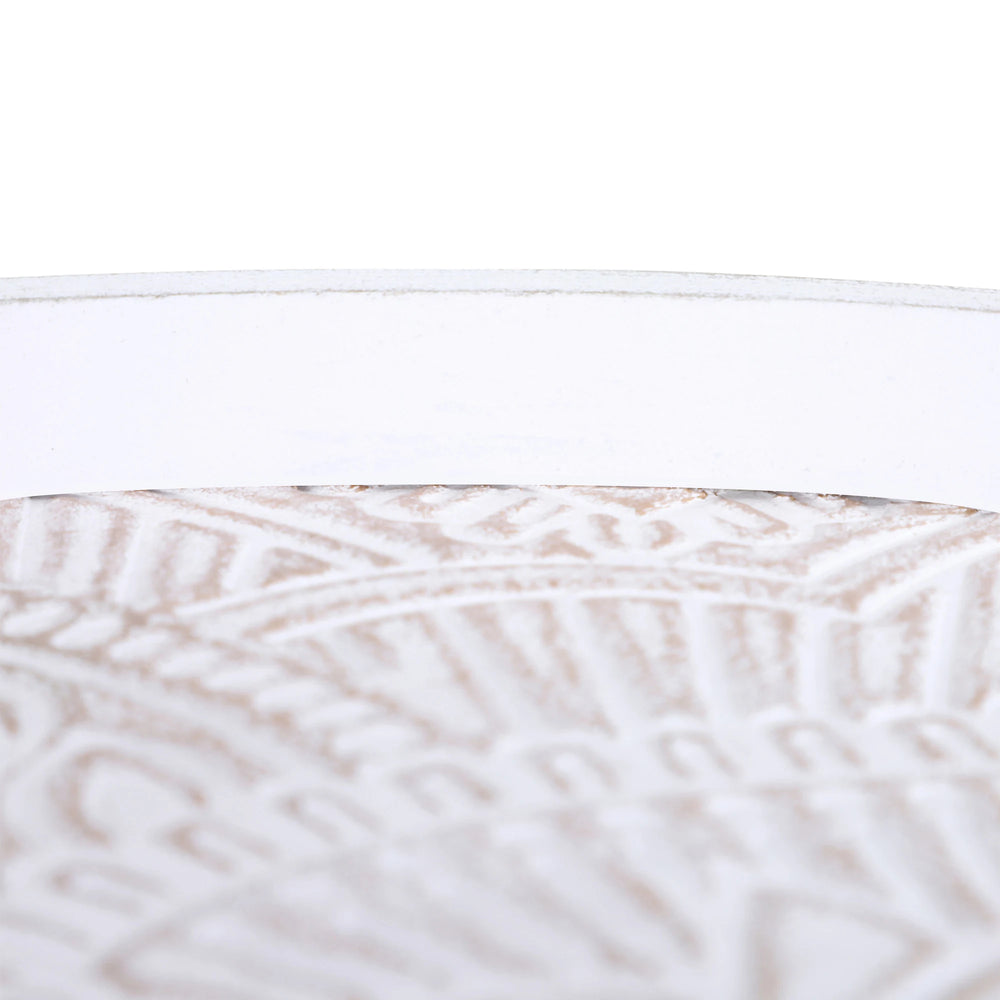 HOMCOM Coffee Table, Carved Floral Round Table with Tray-style Top and Wood Legs, Modern Side Table for Living Room, Set of 2, White