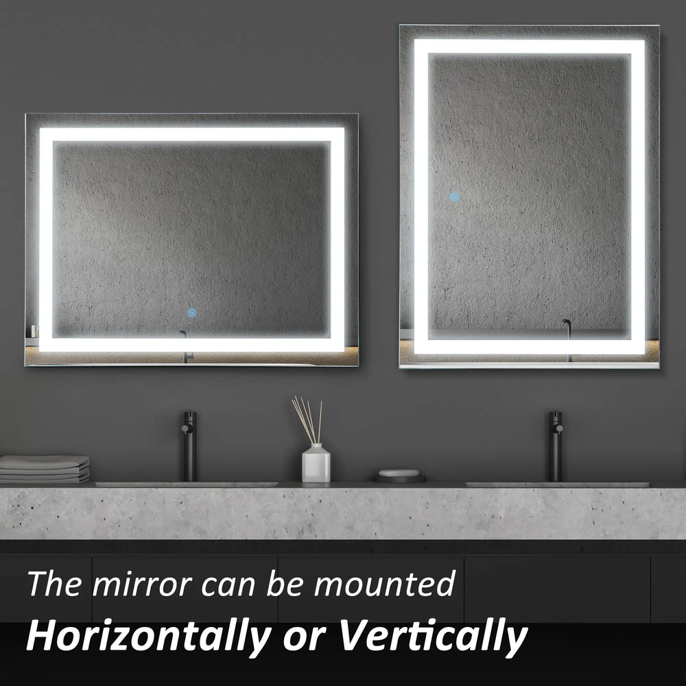 kleankin 80x60cm LED Bathroom Mirror Wall Mounted Vanity Light Illuminated w/ Touch Switch Accessories Home Furnishings