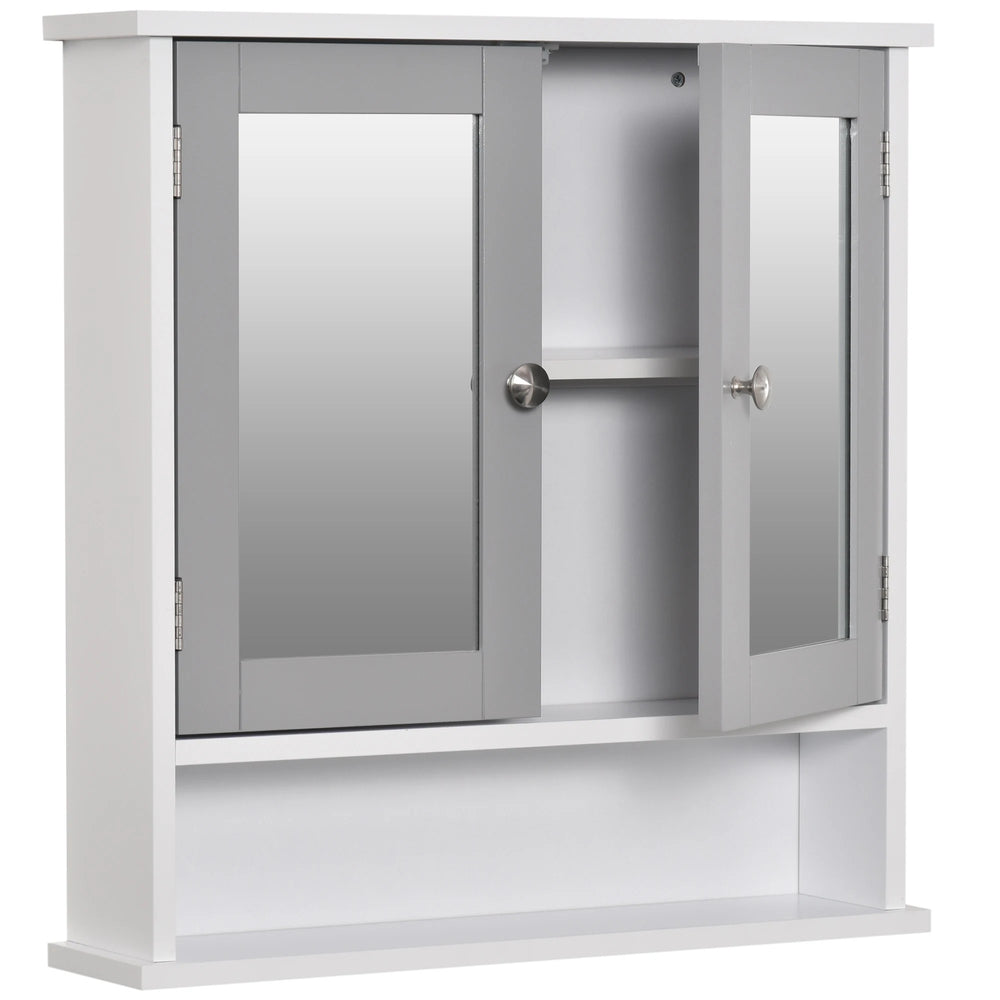 An everyday spot to get ready starts with this kleankin bathroom cabinet. As well as space to keep products, cosmetics, toiletries and more safely stored inside, it features two small front mirrors for easily getting ready. The inner adjustable shelf creates room for larger items when needed, with the bottom open shelf for even easier easy access. It's finished with polished metal door handles.