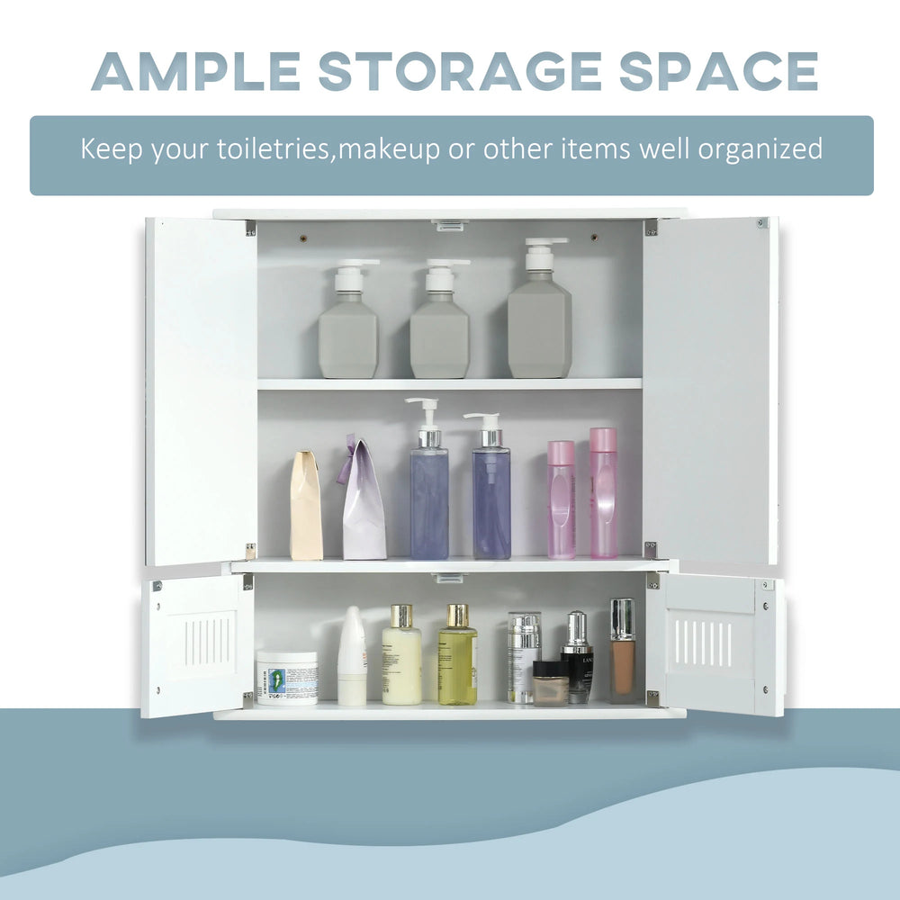 Creating stylish bathroom storage option has never been so easy - this kleankin medicine cabinet will do the trick instantly. Formed of a bottom shelf with small vented doors for airflow, with an two-compartment upper cabinet, there's plenty of space for keeping bottles, make-up, toiletries and everything in-between. Mirrored doors give you a place to see and get ready. The surface is painted for a smooth and easy-wipe finish. Setting it up is simple: simply fix on the wall securely and go.