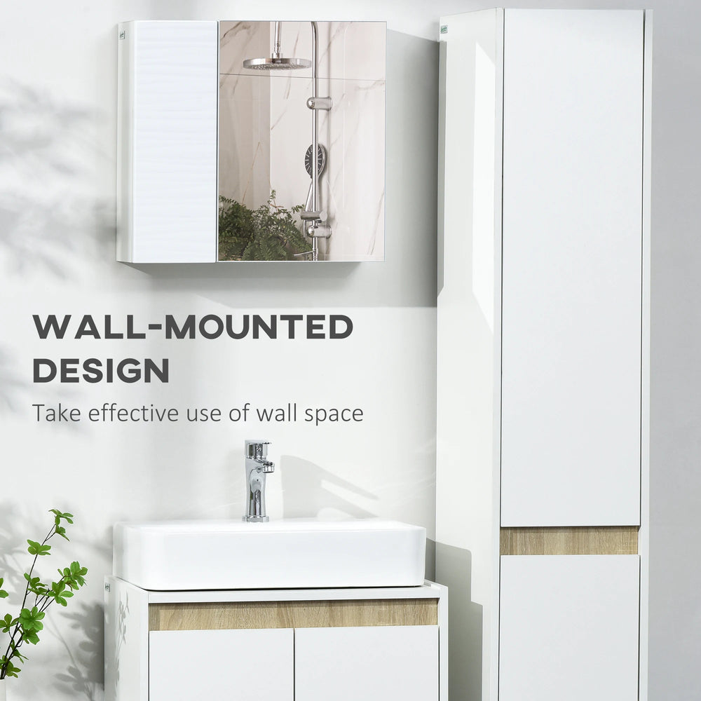 kleankin Bathroom Cabinet with Mirror, Double Door Wall Mounted Storage Cupboard Organizer with Adjustable Shelves, White