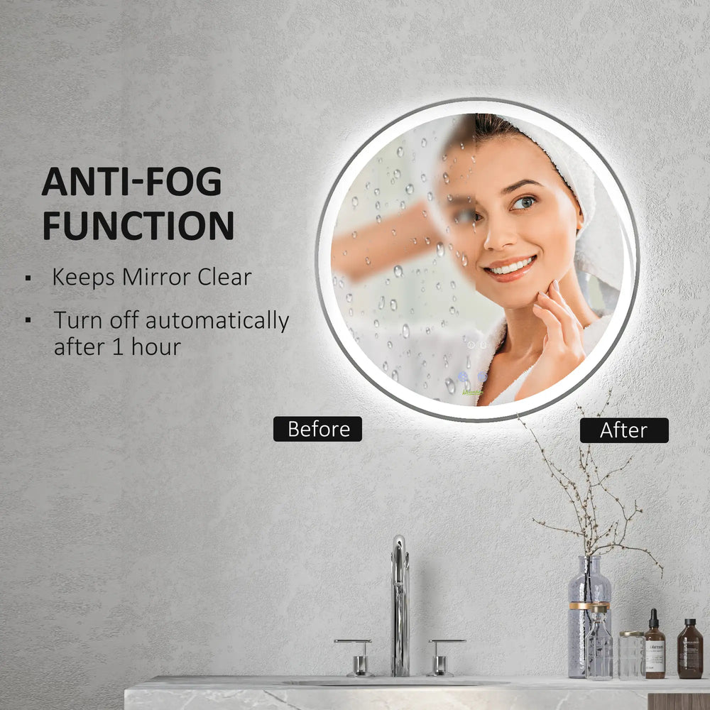 An all-rounder for your home - this kleankin bathroom led mirror. Not only does it come in a stylish round shape, but it's fitted with an outer LED light, with a touch-control, and for bonus points, it has a defog feature: you'll love using this day and night. The light brightness is adjustable - with colours warm white, white and cool white to pick between - you can use this mirror through different times of the day. Wire connected design - must be installed by a trained professional.