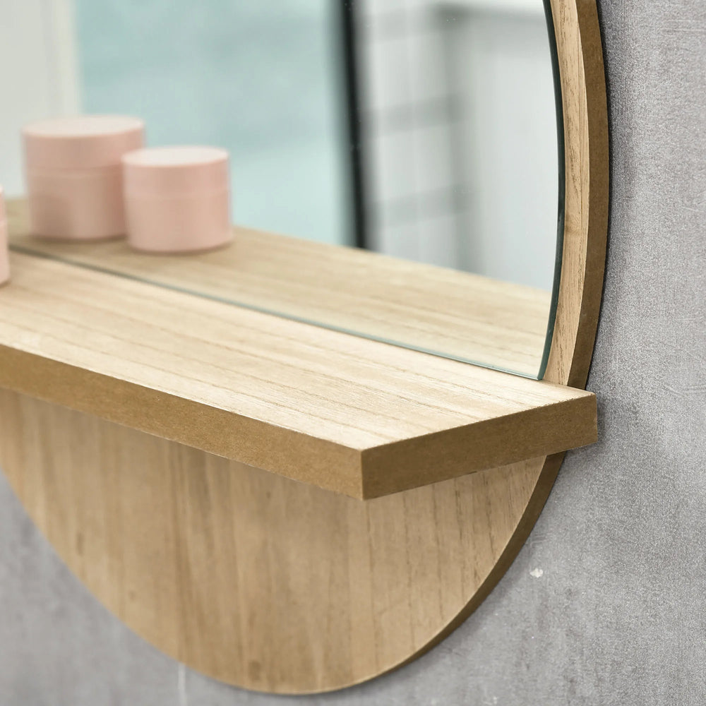 kleankin 45cm Round Home Mirror, with Shelf - Natural Wood Effect