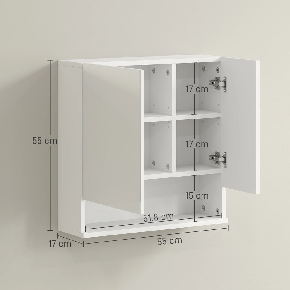 A subtle dash of impact welcomed into your space with kleankin. This bathroom wall cabinet, with its white body and doors is given a touch of extra character with the embossed lines on the doors - say hello to something unique this season and beyond. It comes with a mirrored door cupboard, side cupboard and bottom shelf; both cupboards features a three-level adjustable shelf for flexibility. Subtle style done the minimalist way.