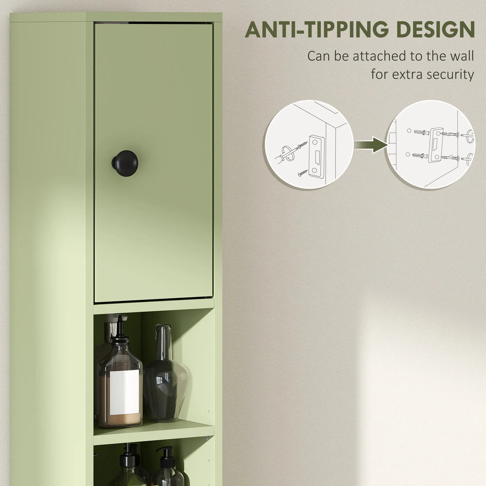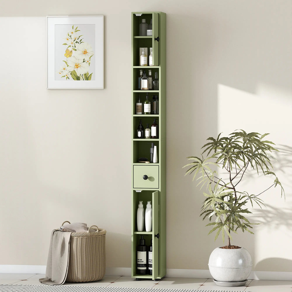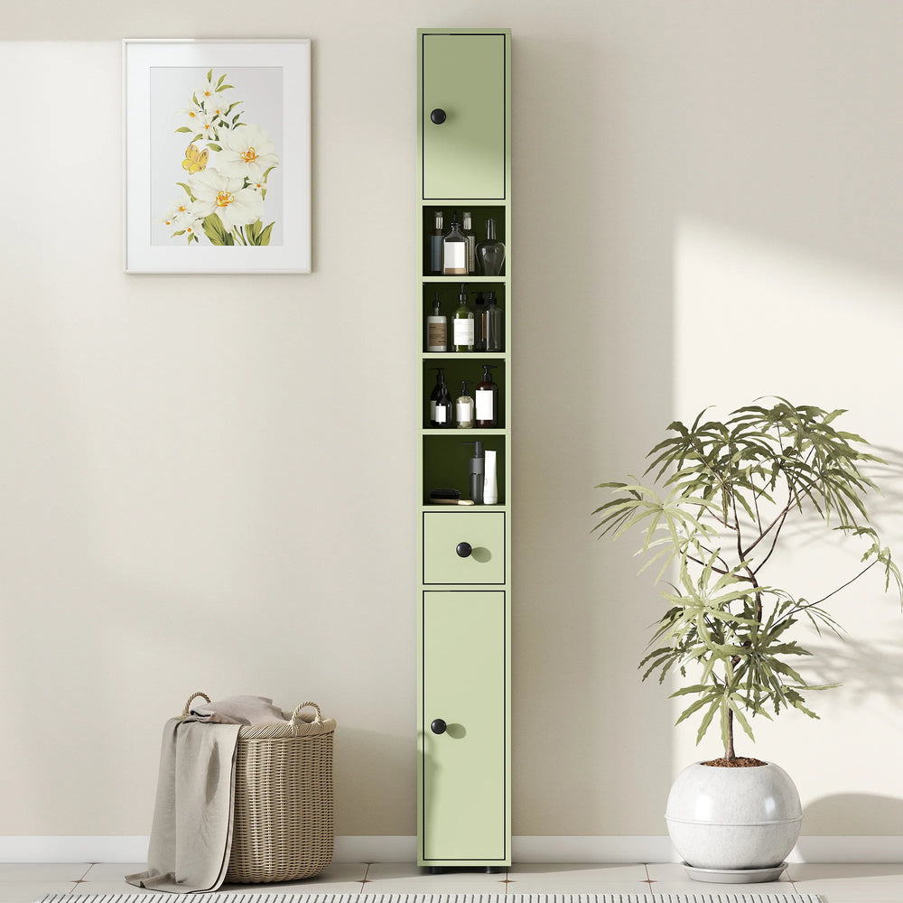 kleankin 180cm Slim Bathroom Cabinet, with Drawer, Shelves and Cupboards - Green