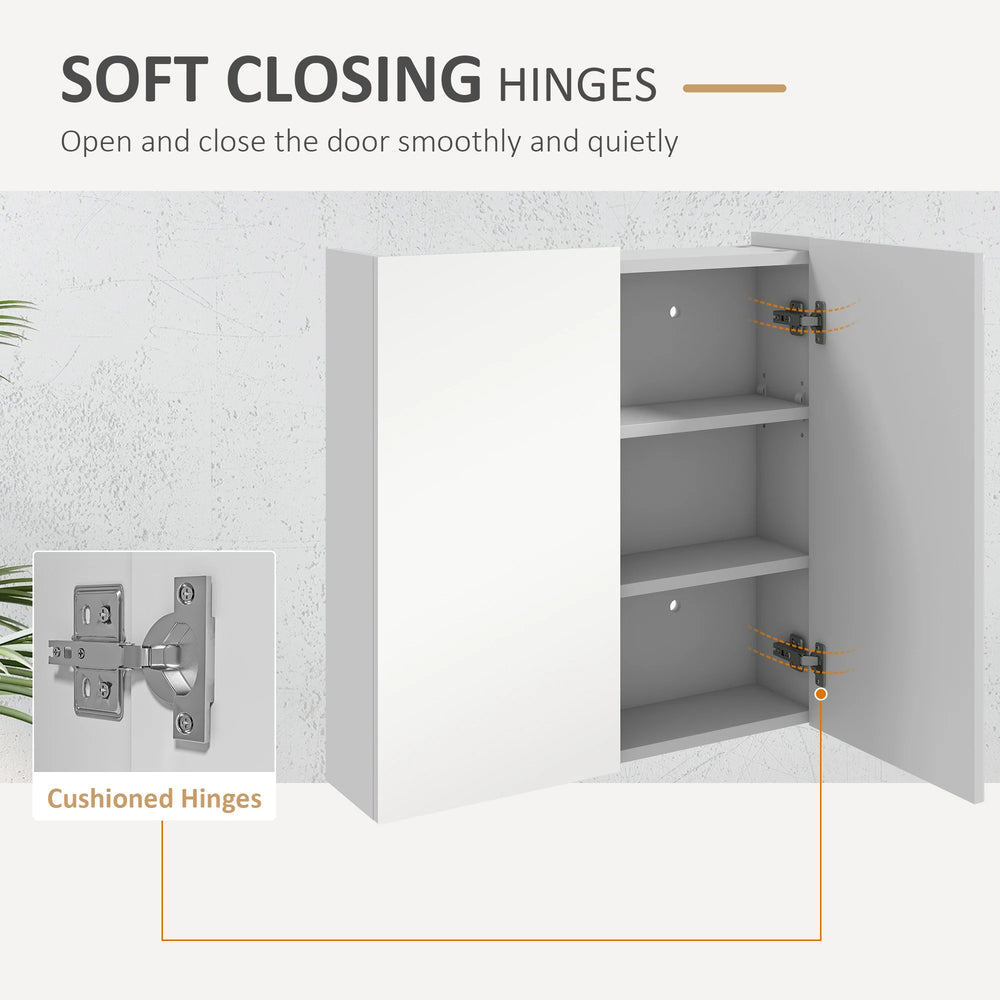 - Two mirrored doors: Bathroom cabinet gives you reflection, so you can get ready day and night. Two doors make it easy to access inside. Soft cushioned hinges.