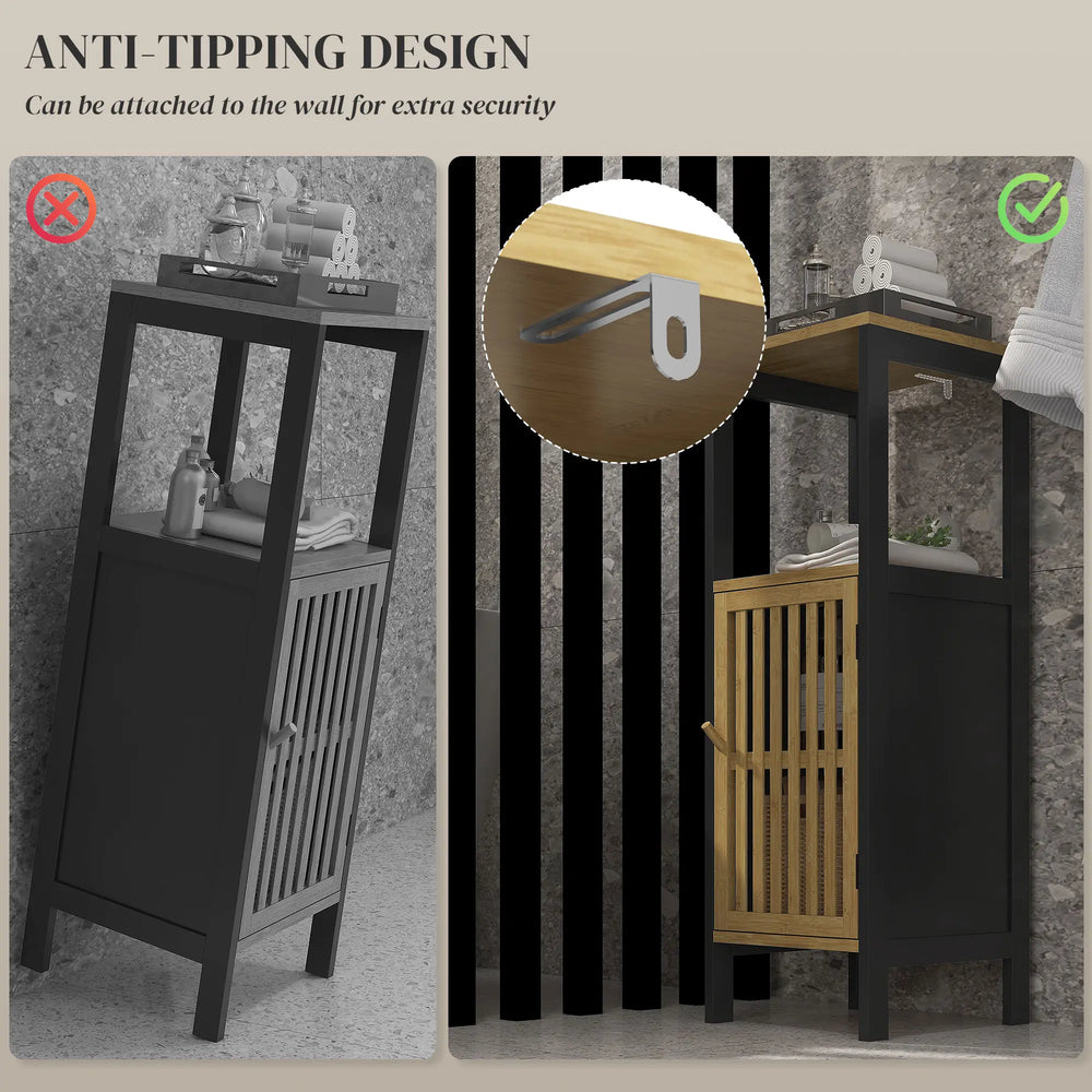 - Bamboo blend structure: Bathroom cupboard is made of bamboo and MDF, suitable for everyday use. Anti-tipping straps provide extra safety.