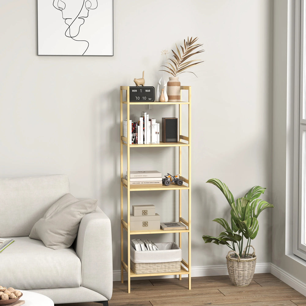 HOMCOM 5-Tier Bamboo Bathroom Storage Shelf, Freestanding Shelving Unit with Adjustable Rack for Kitchen Bathroom Living Room, Natural Wood Finish is backordered and will ship as soon as it is back in stock.