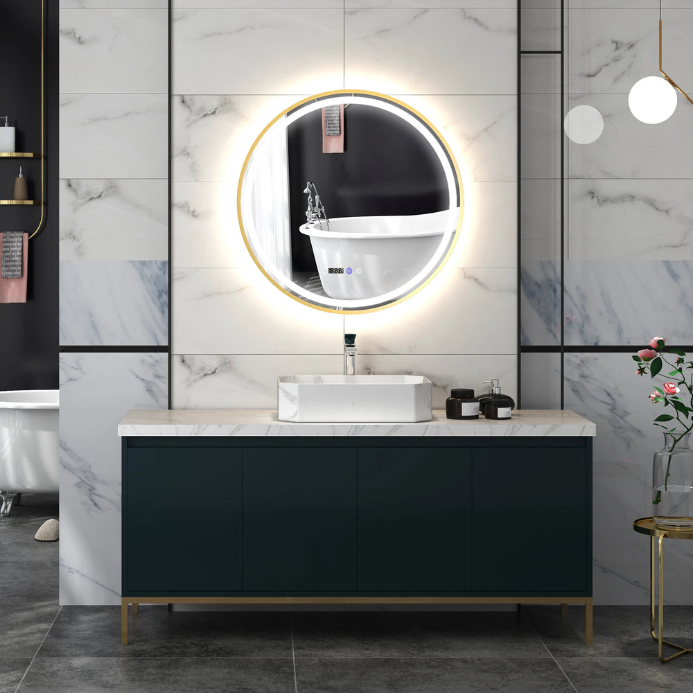HOMCOM 80cm Anti-Fog LED Bathroom Mirror - Gold Tone