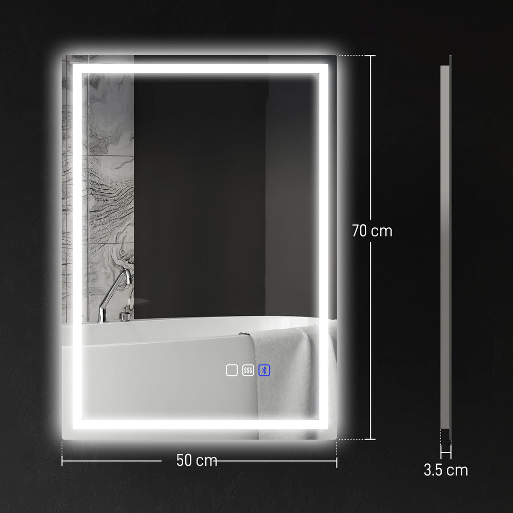 HOMCOM 70 x 50 cm Bluetooth Bathroom Mirror - Silver-Tone