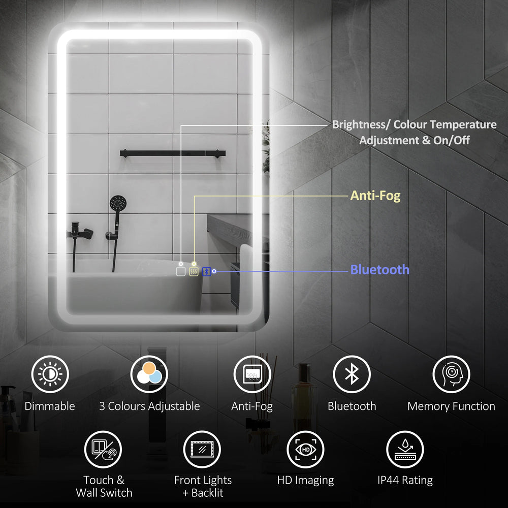 - Safe HD mirror, with fog-clearing demister pads: Shatter-resistant tempered glass provides a clear and beautiful reflection. See yourself clearly in this IP44-rated smart mirror, even in steamy bathrooms