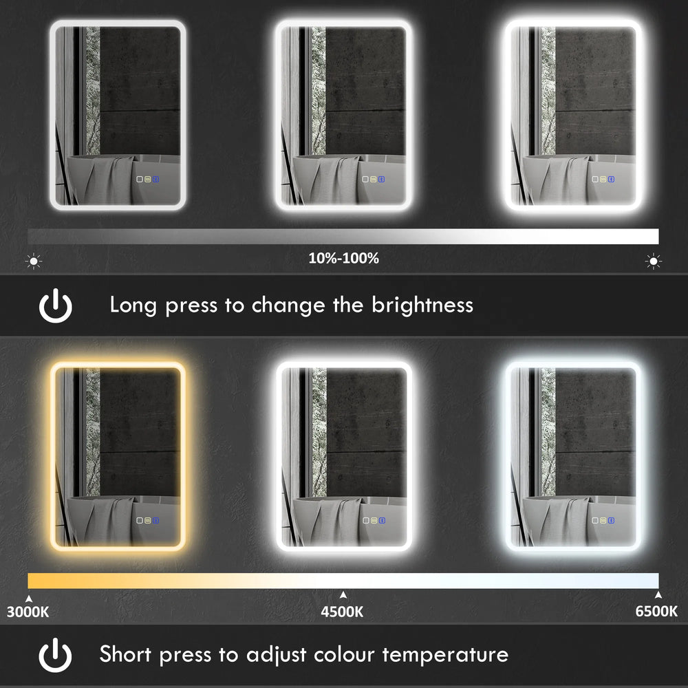 - Three-colour LED light: Flick between warm light, natural light or cool white and adjust the brightness between 10-100% - set LED bathroom mirror to illuminate the tone you want. Light lasts up to 50,000 hours