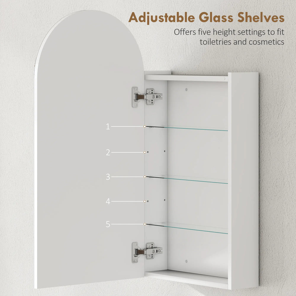 HOMCOM Arched Bathroom Mirror Cabinet with Adjustable Glass Shelves - White