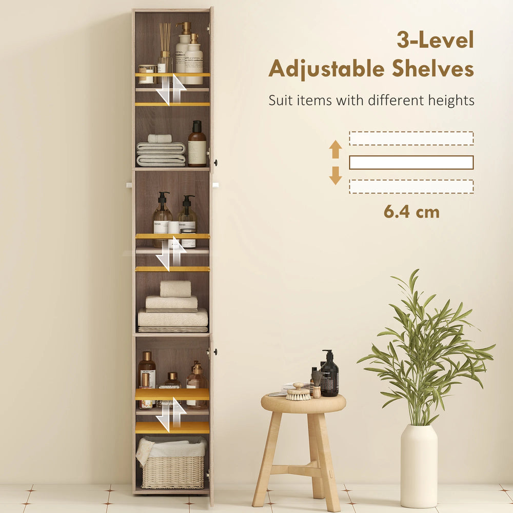 Struggling with a cluttered, compact bathroom? The morning chaos of scattered bottles and towels can make your routine feel stressful. This HOMCOM tall bathroom cabinet is your solution. Its slim design maximizes vertical space, while adjustable shelves in the bathroom storage cabinet neatly organise everything from tall lotions to fresh towels. Rediscover the joy of a serene, clutter-free start to your day, with everything perfectly in its place.