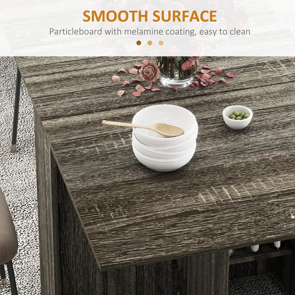 Make large unused tables at home a thing of the past. Choose this HOMCOM drop leaf dining table for extending surface space, whenever you need it. Both sides lift up and drop down super easily. Inside there are two shelves for close by and discreet storage - easy to keep things close to you. Side panels are complete with braked wheels for expanding and folding the kitchen table conveniently.