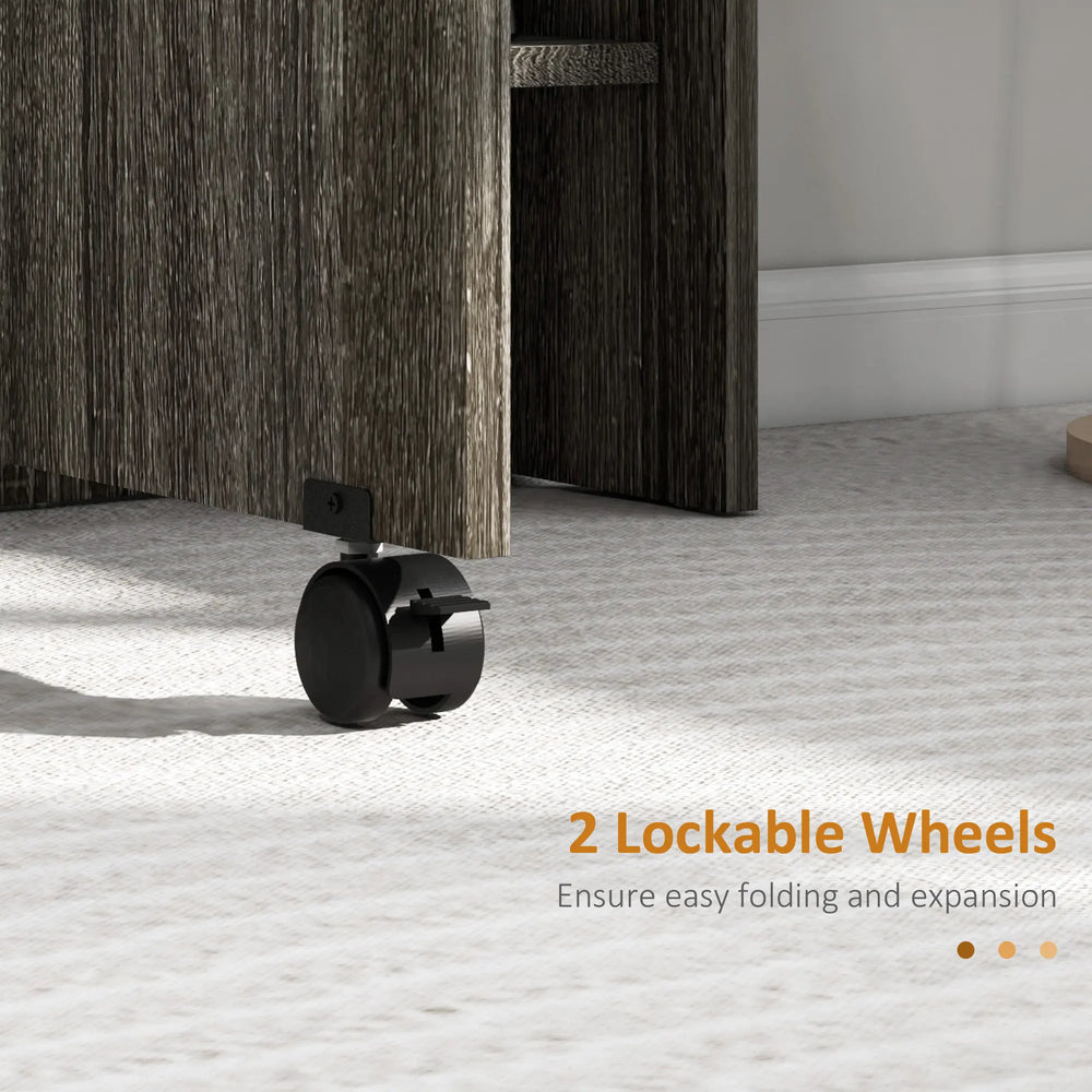 HOMCOM Folding Dining Table, Drop Leaf Table with 2-Tier Shelves, Rolling Casters, for Small Spaces, Kitchen, Grey