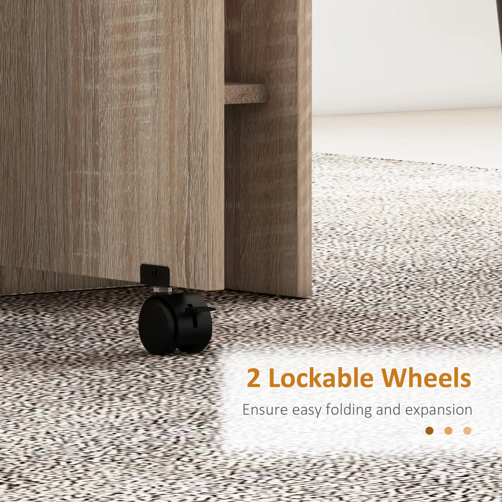 Make large unused tables at home a thing of the past. Choose this HOMCOM drop leaf dining table for extending surface space, whenever you need it. Both sides lift up and drop down super easily. Inside there are two shelves for close by and discreet storage - easy to keep things close to you. Side panels are complete with braked wheels for expanding and folding the kitchen table conveniently.