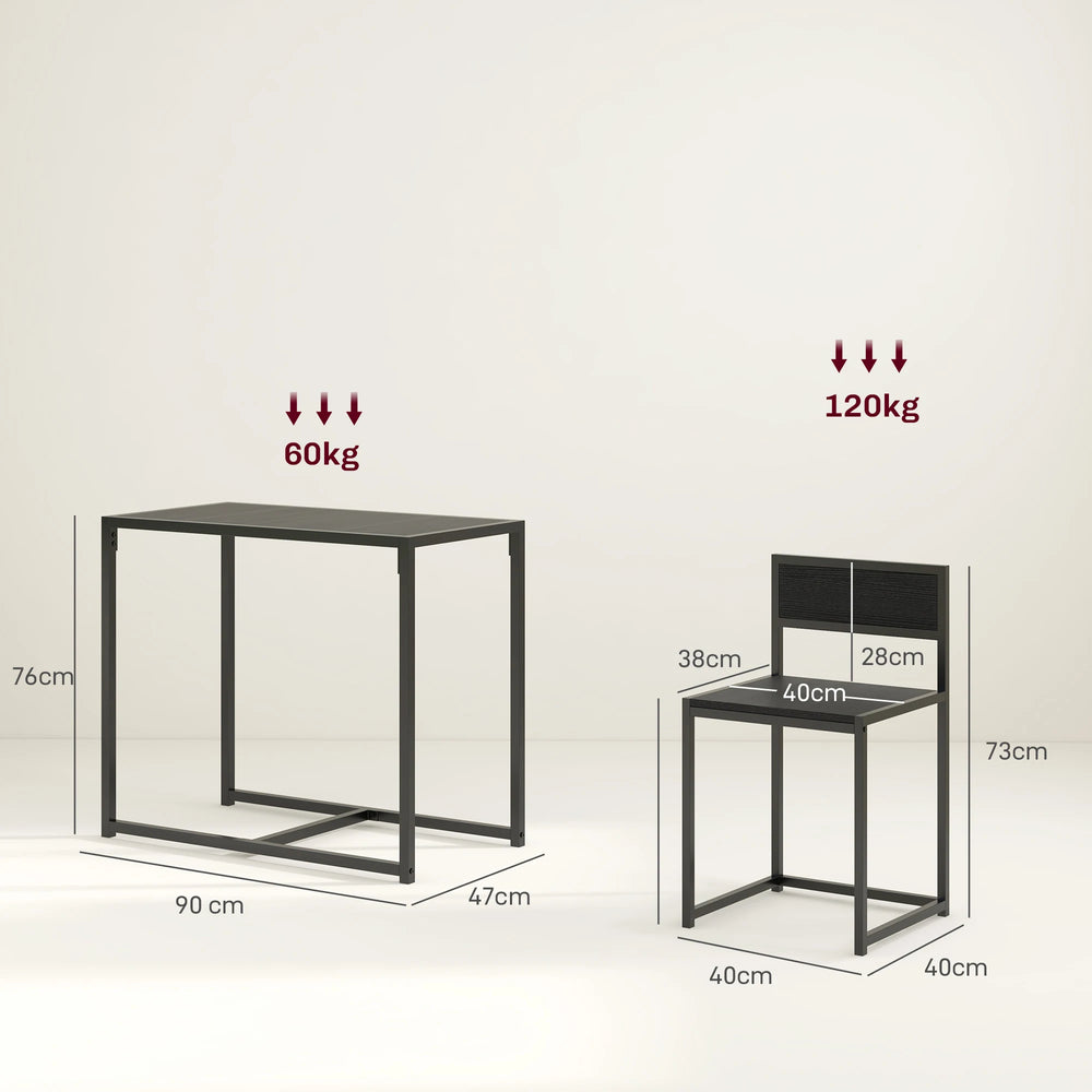 HOMCOM Dining Table and Chairs Set 2, Dining Room Sets, Rectangular Space Saving Table and 2 Chairs for Compact Kitchens, Steel Frame, Black