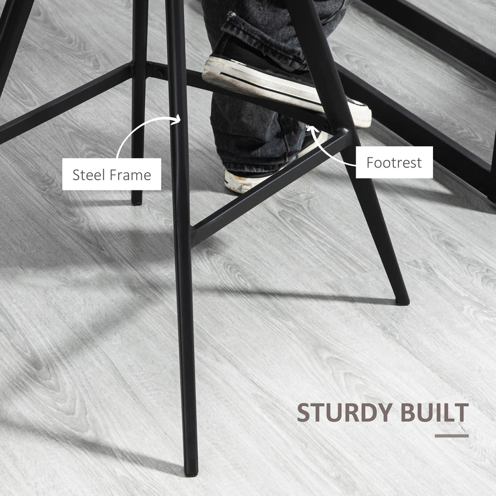 HOMCOM Set Of 2 Bar Stools Vintage Microfiber Cloth Tub Seats Padded Comfortable Steel Frame Footrest Quilted Home Bar Cafe Kitchen Chair Stylish Dark Grey