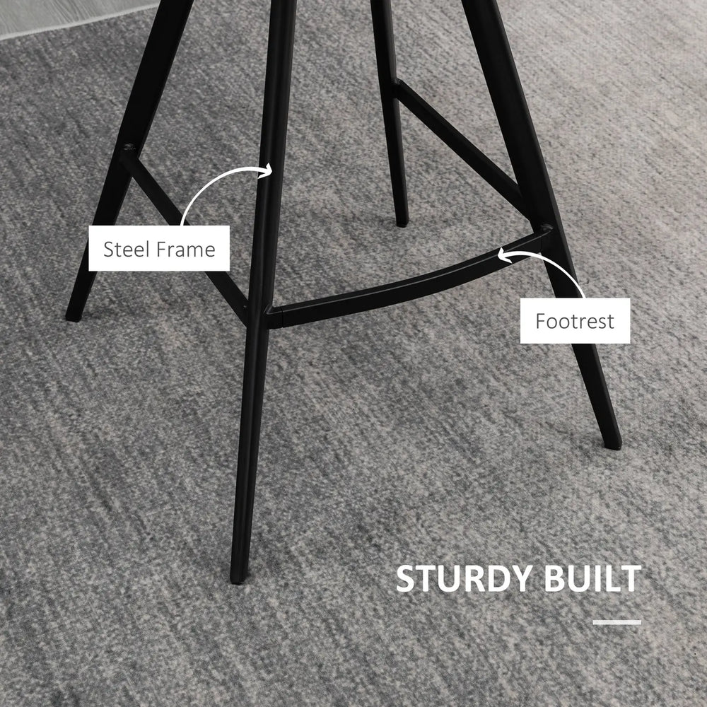 HOMCOM Set Of 2 Bar Stools Vintage Microfiber Cloth Tub Seats Padded Comfortable Steel Frame Footrest Quilted Home Bar Cafe Kitchen Chair Stylish Grey