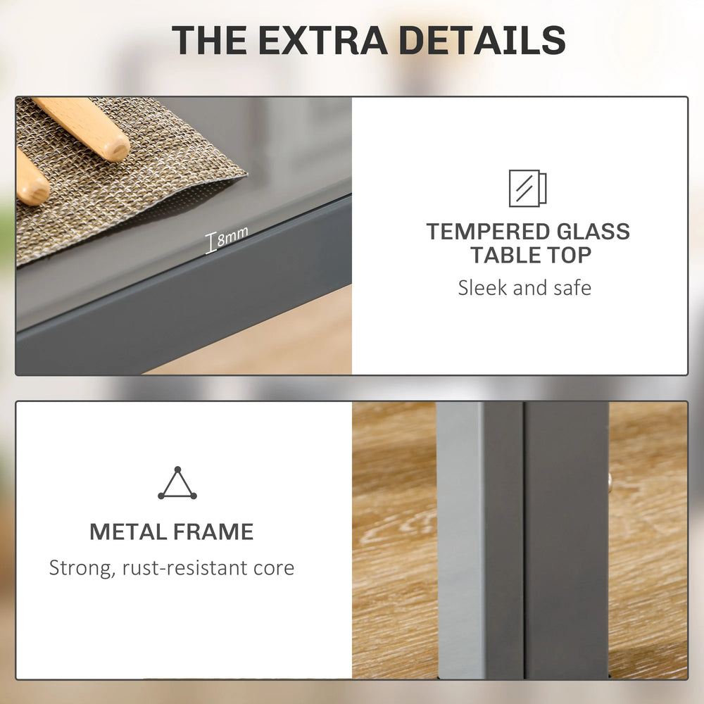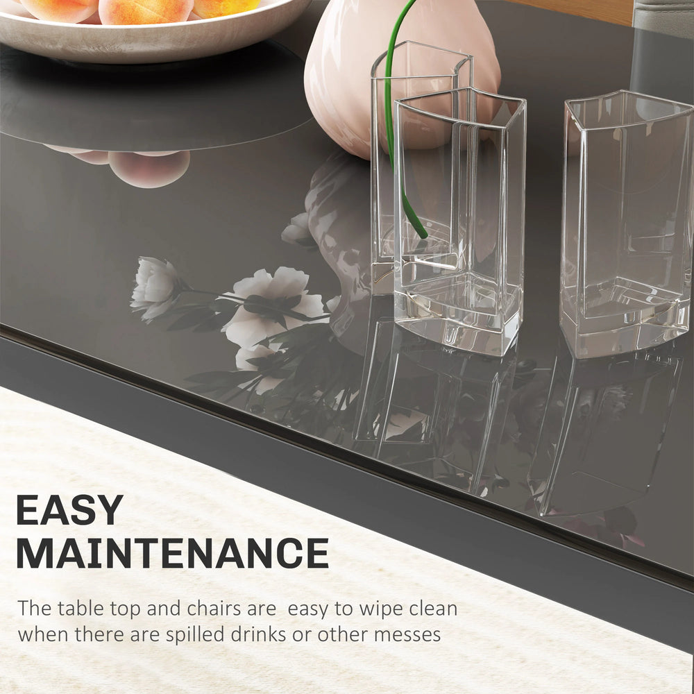 HOMCOM 5-Piece Kitchen Dining Table Set with 4 Faux Leather Metal Frame Chairs Glass Tabletop Desk for Dining Room, Kitchen, Dinette, Grey