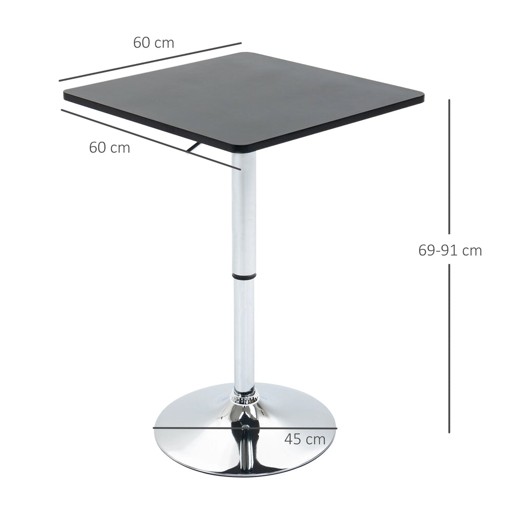 Stylish dining, at any height, doesn't come much easier than this. Look to this adjustable bar table from HOMCOM for the perfect place to eat, drink and relax - at any time of day. It uses polished steel for the frame with a large round base, which not only ensures it keeps steady and balanced, but gives it an overall beautiful and sleek look. The frame is adjustable so you can set to a level which is most comfortable. It comes complete with the square table top for a flat surface to use.