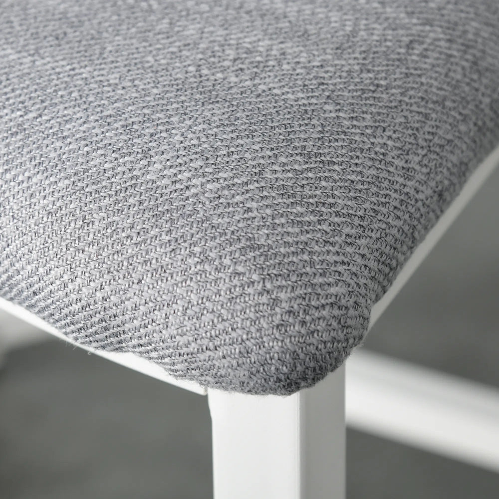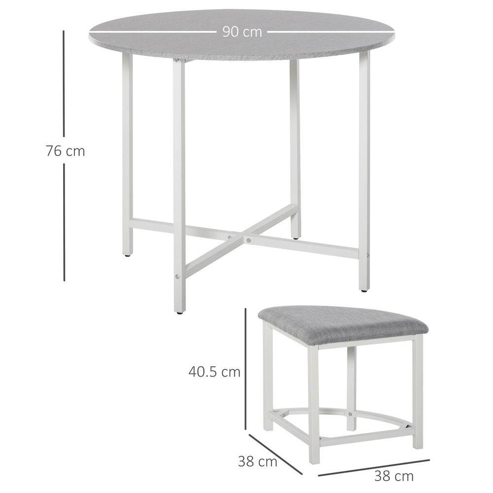Comfortable and compact seating you won't want to miss out on. This five-piece dining set from HOMCOM is a must for making those meals times even more special and memorable. Comes with four stools and large round table, in a modern grey and white colour scheme. The armless stools allow you to sit freely, with the triangle shape tucking under the table for easy storage. Stools are fitted with a padded cushion seat, and the table comes with a durable and flat MDF top. Finished with bottom bar on all pieces to hold you feet comfortably.