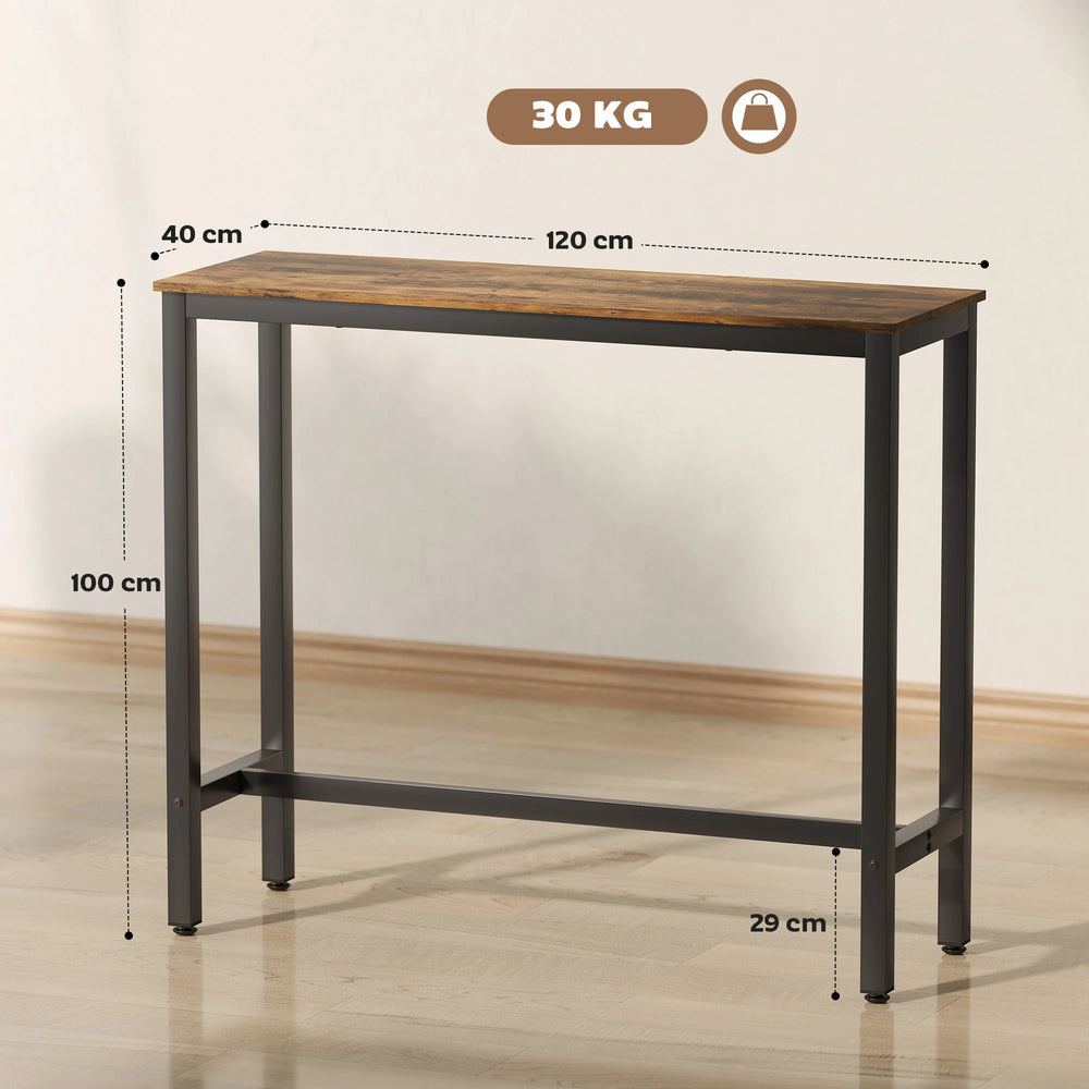 HOMCOM Rectangular Bar Table, Wood Effect Pub Coffee Table for Small Space, Breakfast Dining, Kitchen, Industrial, Rustic Brown