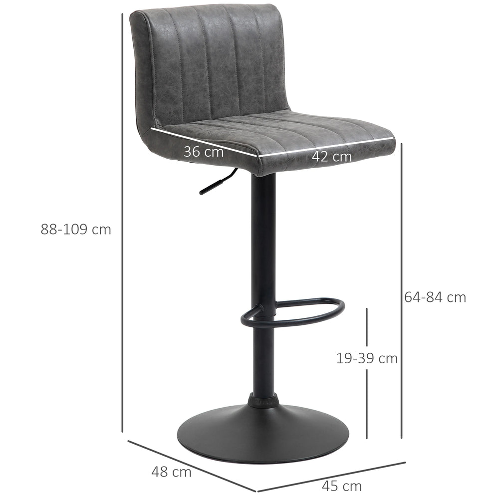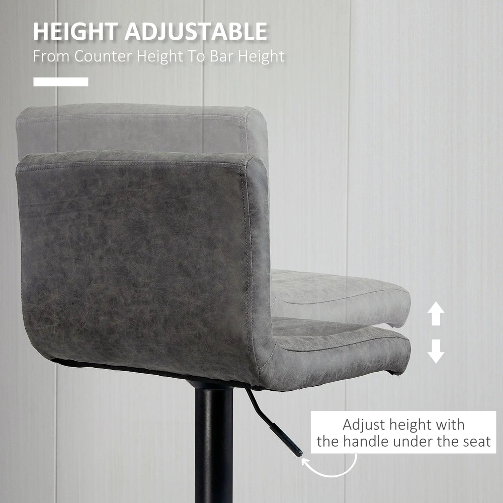 HOMCOM Adjustable Barstools Set of 2, Swivel Counter Bar Chairs, Bar Stools with Footrest, PU Leather, Gas Lift, Grey