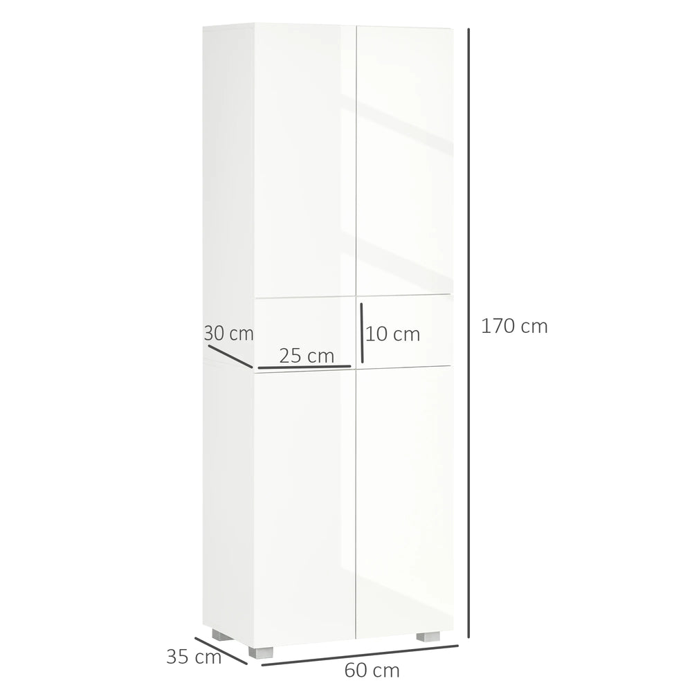 HOMCOM 4-Door Kitchen Cupboard, Tall Freestanding 5-Tier Storage Cabinet with 3 Adjustable Shelves, 2 Drawers for Living Room, Dining Room, Push to Open Design, High Gloss White is backordered and will ship as soon as it is back in stock.