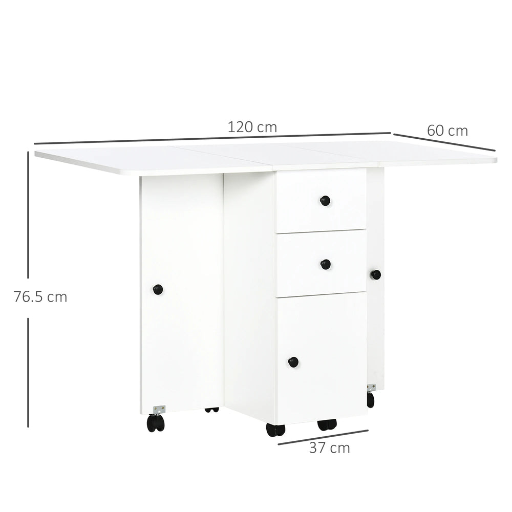 HOMCOM Multi-Storage Six-Person Drop Leaf Dining Table - White