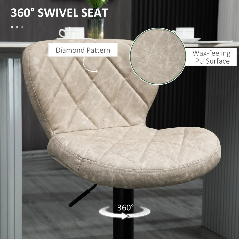 HOMCOM Bar Stools, Set of 2 Breakfast Bar Chairs, Swivel Barstools with Backrest and Footrest, Steel Frame Diamond Pattern PU, for Kitchen Counter, Dining Room, Light Khaki