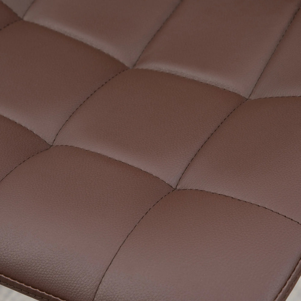 - Faux leather upholstery is sleek, in a modern quilted finish