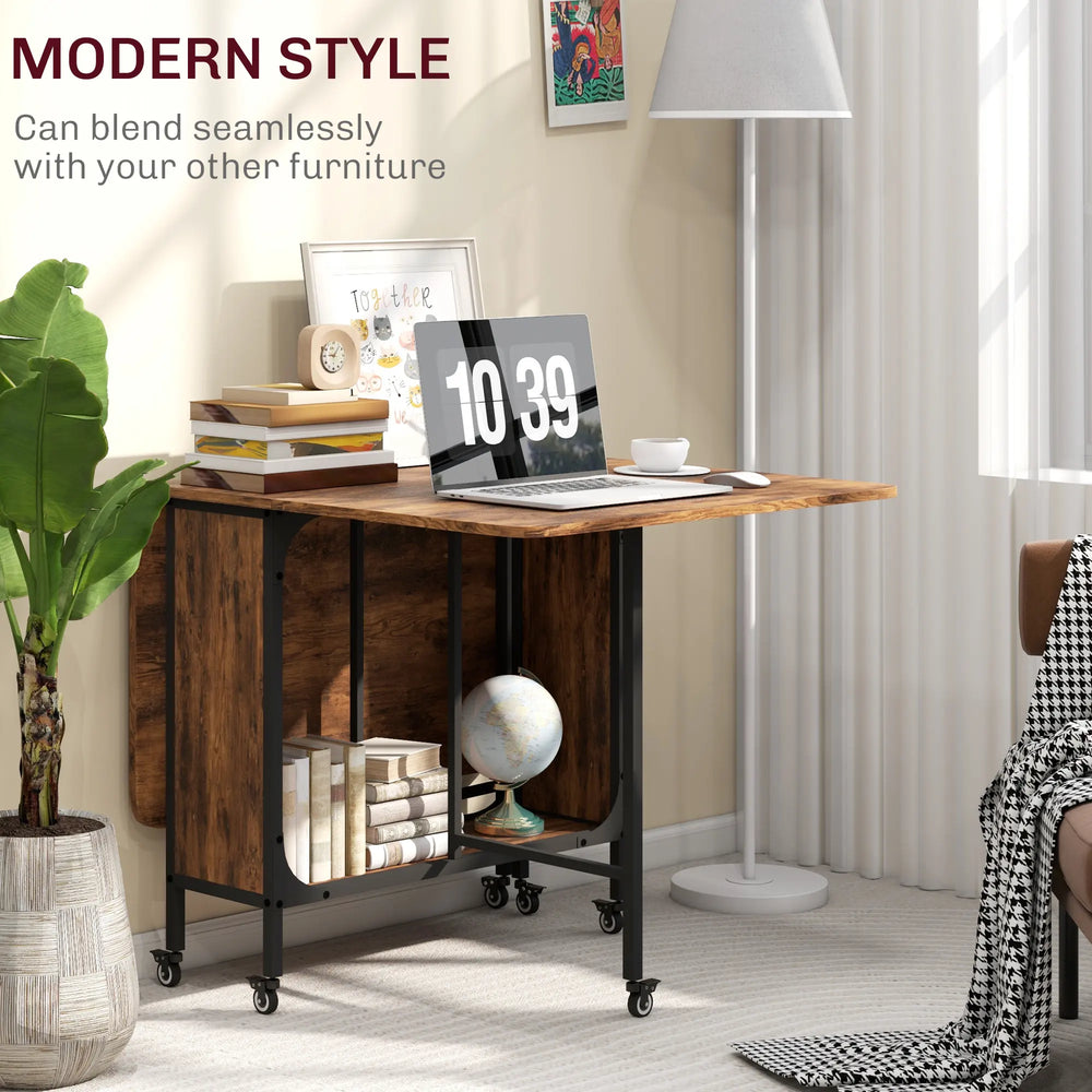Make large unused tables at home a thing of the past. Choose this folding dining table from HOMCOM for an option that saves space when needed. Crafted into an expandable design, where both sides lift from the bottom; it creates extra surface room while dropping back down into a compact unit effortlessly. It comes with a middle shelf for discreet storage and six wheels to move easily. Completed with brakes.