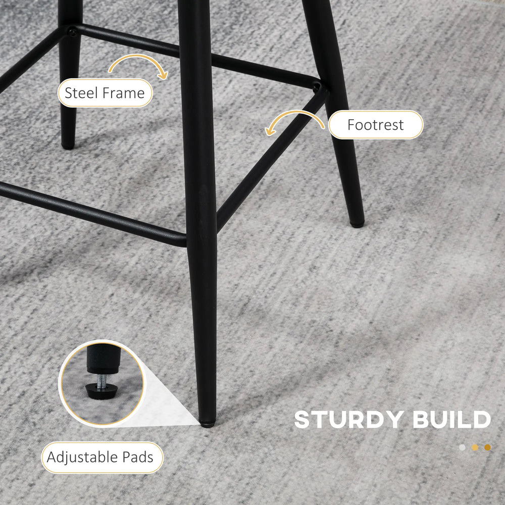 Maximise the space of your bar or dining area with these modern bar stools with backs from HOMCOM. Whether you want to start the morning with a comfy breakfast or end the night with drinks, the sleek barstool suits your need. The luxurious design makes a distinct statement in any setting. The footrest and backrest help you to relax body posture. Enjoy your time and create a comfortable place for your guests with these upholstered bar chairs.