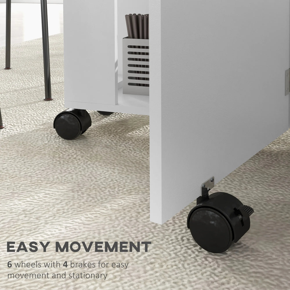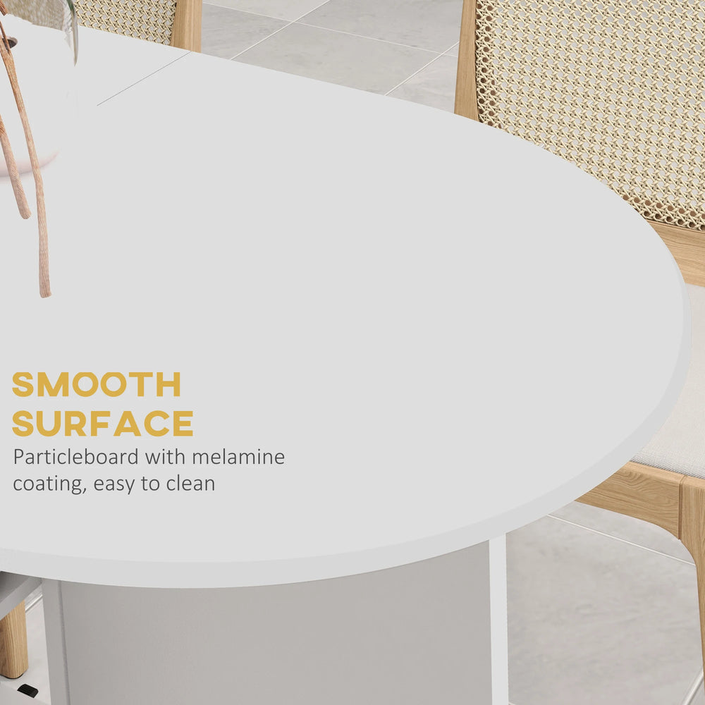HOMCOM Four-Person Drop Leaf Dining Table, with Wheels - White