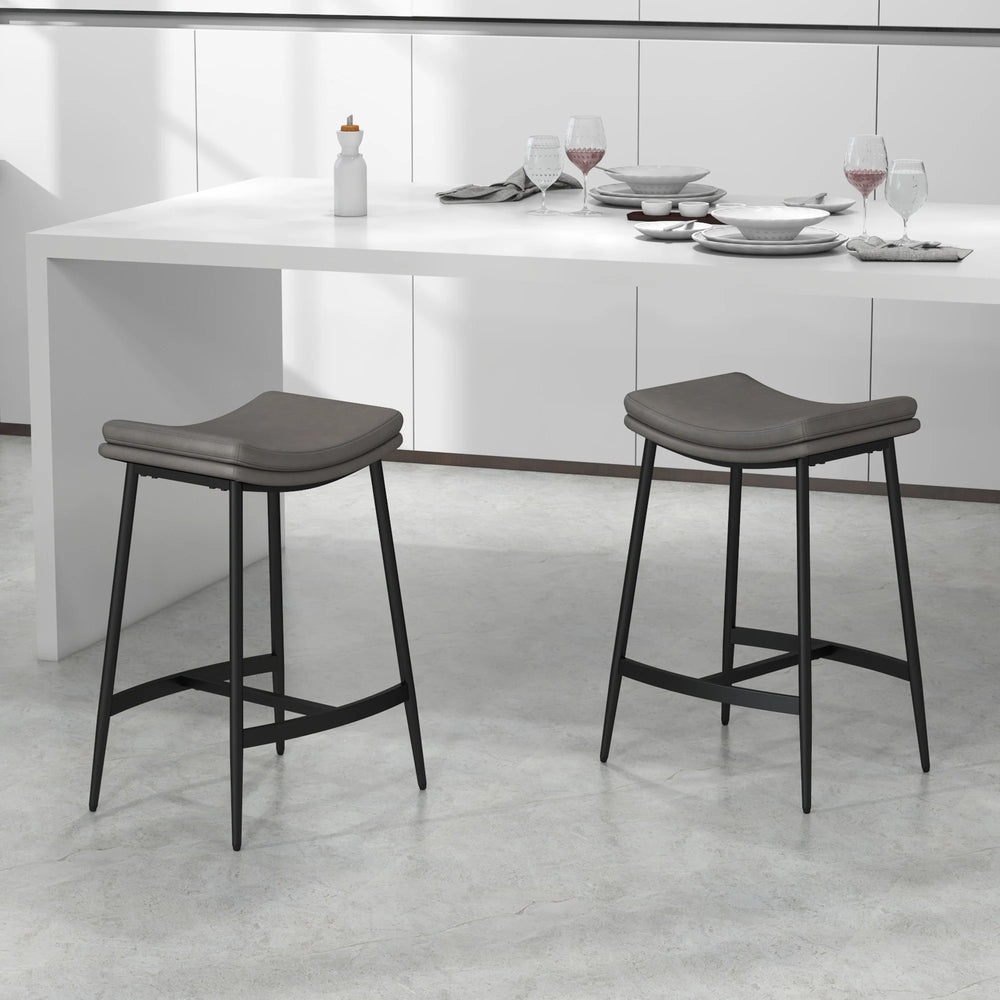 HOMCOM Breakfast Bar Stools Set of 2, Microfibre Upholstered Barstools, Industrial Bar Chairs with Curved Seat and Steel Frame for Dining Room, Kitchen, Grey is backordered and will ship as soon as it is back in stock.