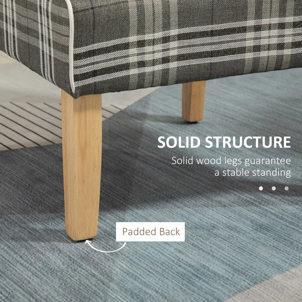 - Linen-touch upholstery is smooth, in a stylish checked plaid design