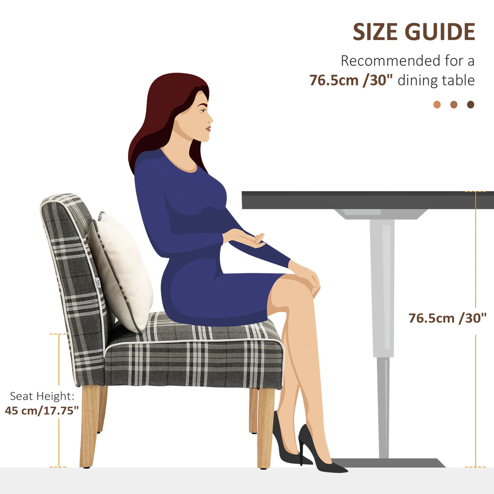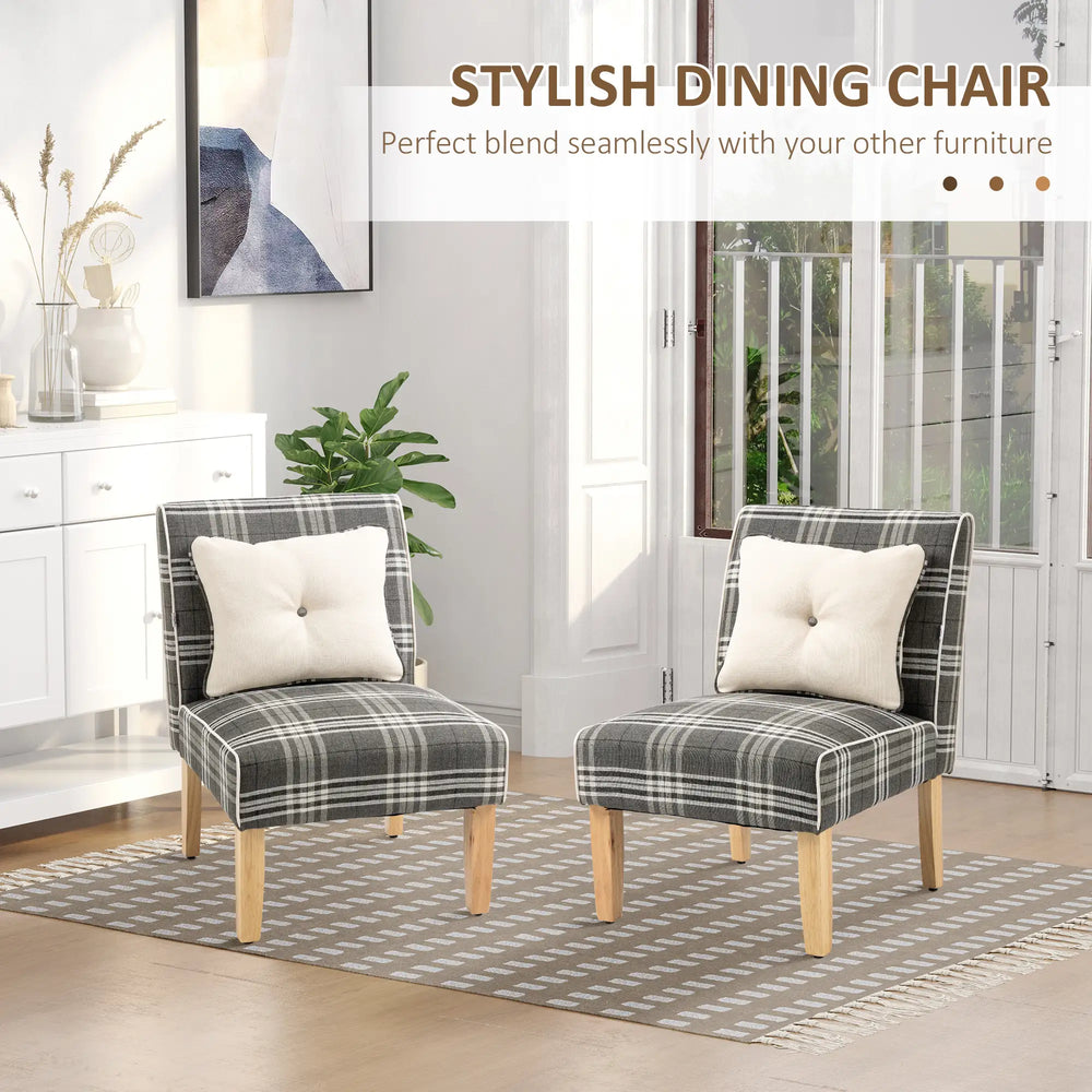 Transform your home and dining space instantly with this set of two dining chairs from HOMCOM. It's covered in linen-look upholstery in a checked design for standout style, making it an accent piece you'll find hard to decide where to have! The four rubber wood legs ensure strong support, whilst the padded seat and back make this chair super comfortable to sit on. A high back for support, with no arms for more freedom. Comes completed with a matching pillow.