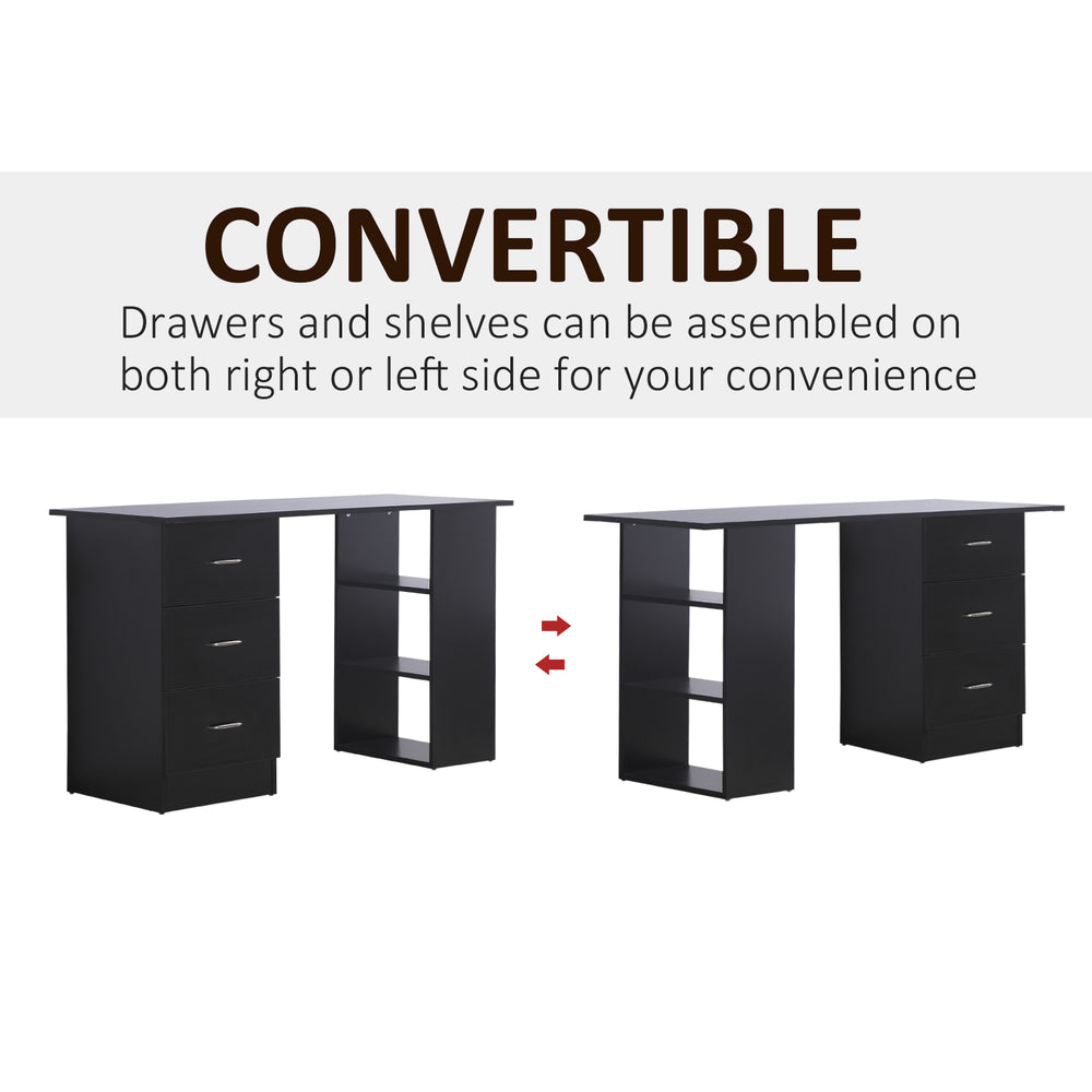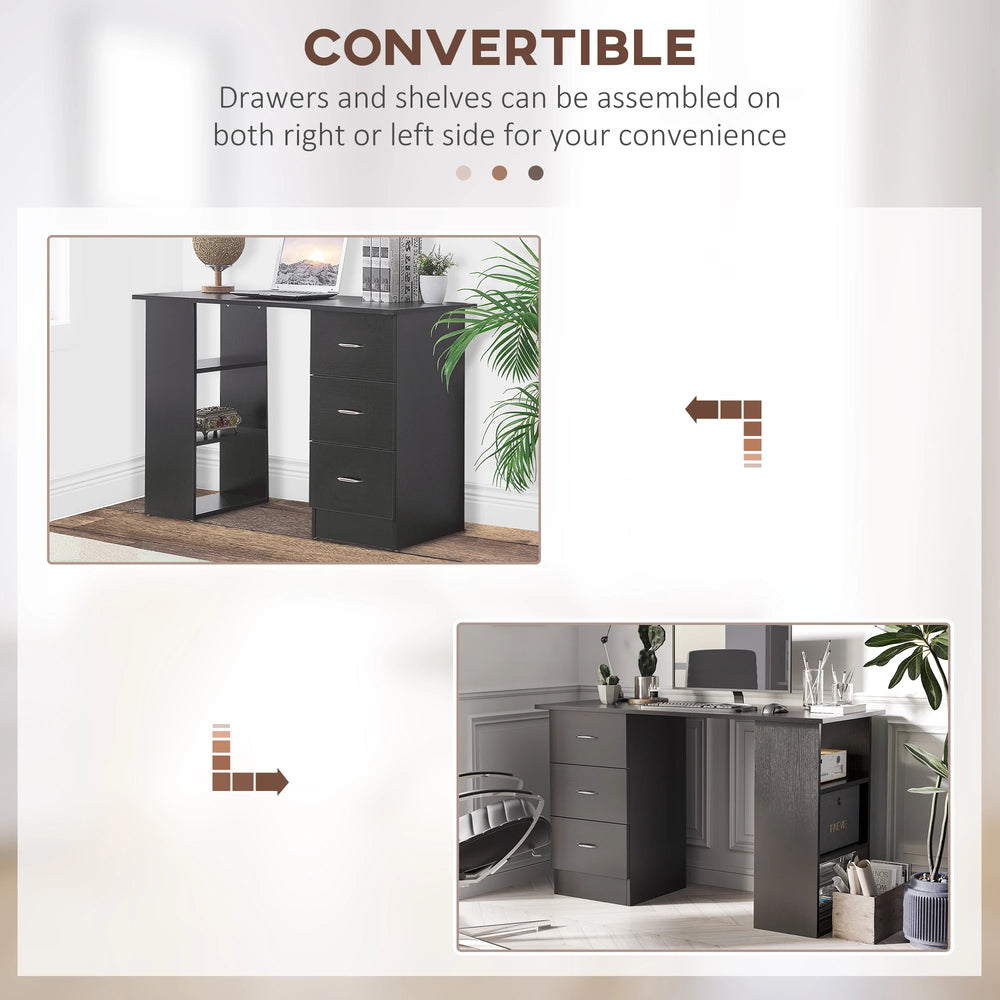 - 3-Tier Shelves & 3 Drawers: This home office desk features 3 drawers for storing your office essentials. 3 open shelves provide extra space for displaying your favourite items. The drawer can be installed back or forth according to your needs, which makes the open shelf can be on the left or the right side