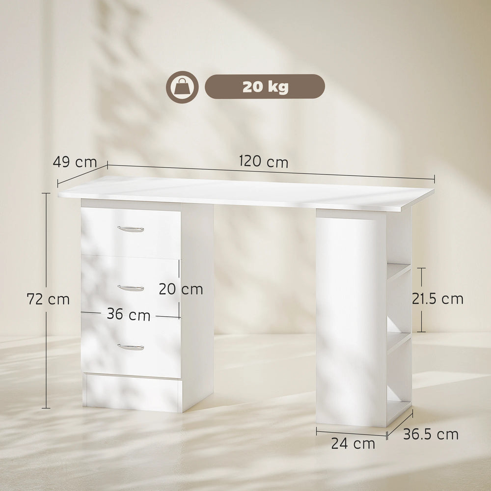 Maintain a contemporary and minimalistic workspace using HOMCOM's desk with drawers. Crafted from particle board, this study table showcases a clean boxy design in a neutral colour, suitable for various home office environments. It offers three enclosed drawers and three open shelves, providing a balanced solution for work essentials and decor. The drawers feature convenient handles for a polished finish.