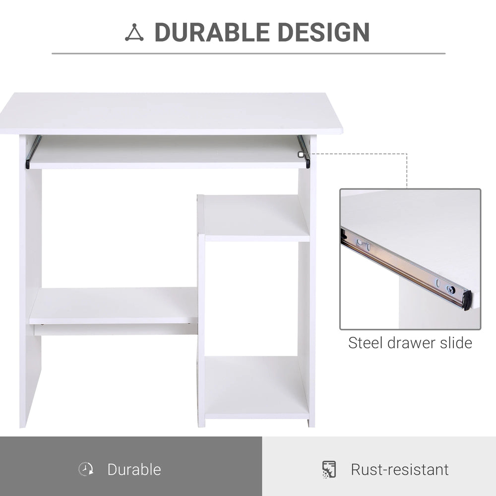 HOMCOM Compact Small Computer Table Wooden Desk Keyboard Tray Storage Shelf Modern Corner Table Home Office White