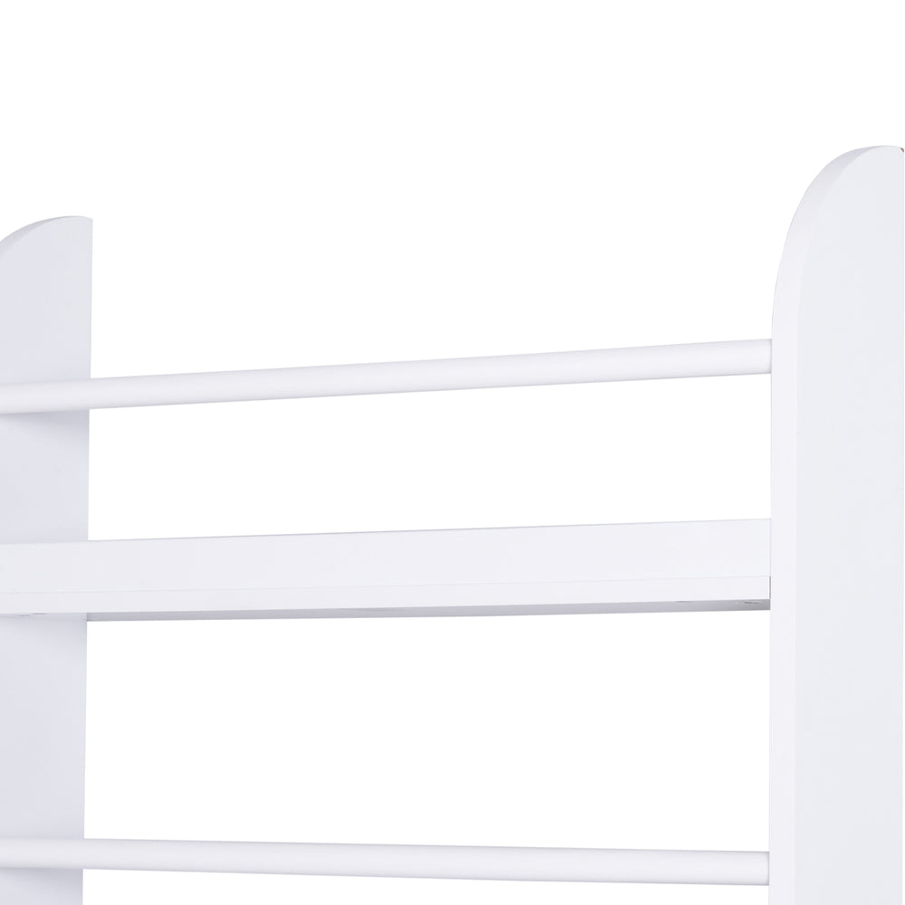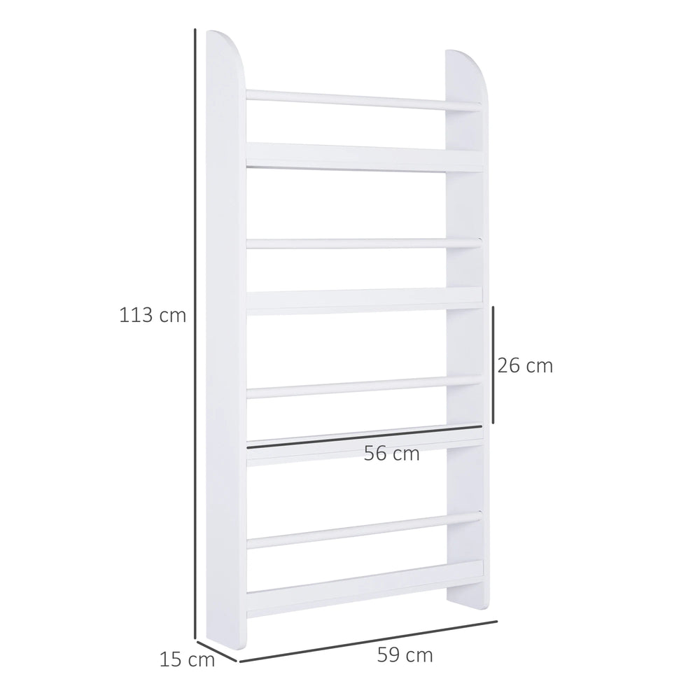 Bring your own unique character to your walls, whilst simultaneously saving floor space in your home with this hanging wall bookshelf from HOMCOM . The water-resistant white paint offers a fresh, timeless look. Crafted from solid wood and MDF for durability, it features four large shelves with double barriers to securely display books, magazines and papers. Easy to clean with a damp cloth. Wall-mounting accessories included.