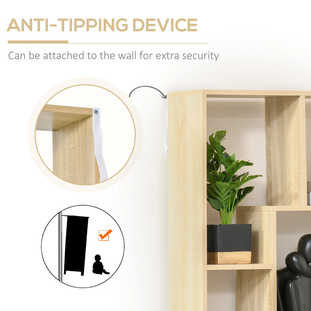 HOMCOM Bookshelf, Tall Bookcase, Modern Room Divider, 8 Cube Storage Unit, Freestanding Storage Shelf for Living Room, Bedroom, Home Office, 70 x 24 x 178 cm, Natural