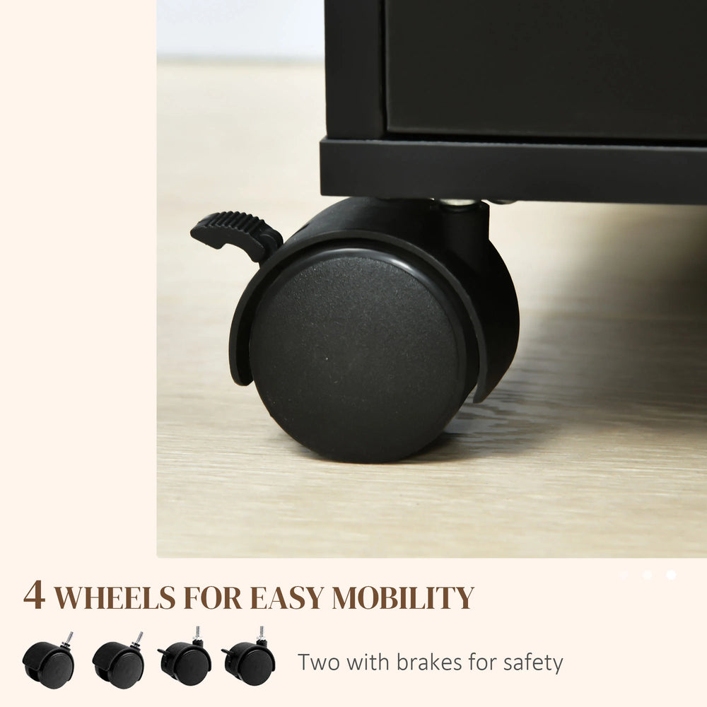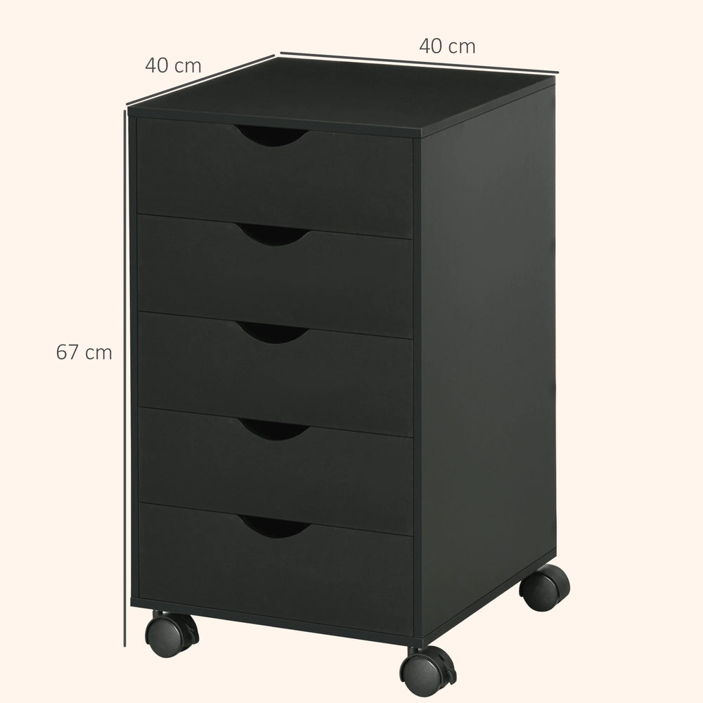 HOMCOM 5 Drawer Mobile Filing Cabinet, Vertical File Cabinet, Modern Rolling Office Storage Organizer Cupboard, Black