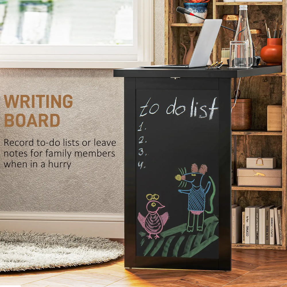 HOMCOM Folding Desk with Blackboard Multi-function Computer Office Workstation Side Shelf for Home Office, Rustic Brown