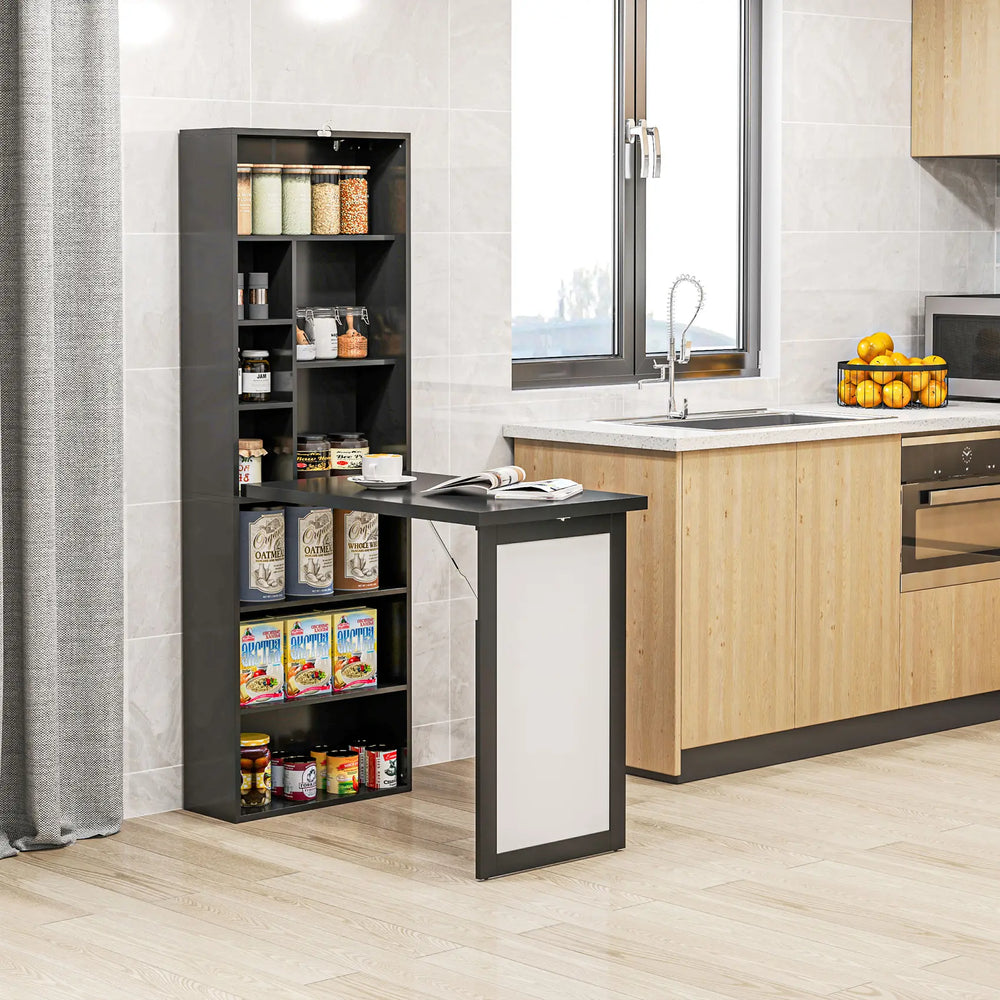 Making the most of your space is easier than ever with this HOMCOM fold-out work desk. The innovative design is formed of three parts: the nine-shelf unit, the central desk and the writing board on the end panel - offering a platform to work on, whilst keeping all your essentials close and your thoughts easily tracked. Your new working spot has never looked so appealing.