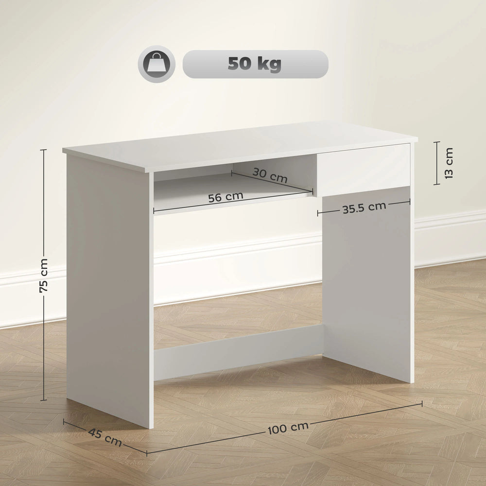 HOMCOM 100cm Compact Computer Desk with Keyboard Tray, Home Office Desk with Drawer for Bedroom Study, White